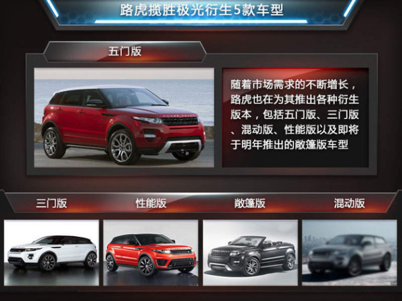 未来国产揽胜极光将与进口车型形成差异化销售,进口极光或将主推极光衍生版本车型。捷豹路虎中国与奇瑞捷豹路虎未来会采用统一的销售渠道,但产品会有差异化。对此奇瑞捷豹路虎有限公司执行副总裁朱国华先生表示:“进口车型和国产车型一定是会有一个明显的产品差异化,我们不会有一个同档次的、同配置的车型来同时销售,我们会有明显的产品差异。”为避免国产车型与进口车型形成“内斗”,未来进口揽胜极光或将只引进极光家族衍生车型。
