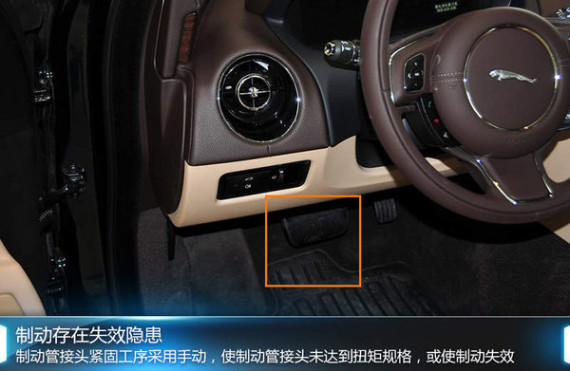 据了解,此次召回捷豹XJ是由于制动存在失效隐患。工厂在制动管接头紧固工序的专用工具进行修理期间采用了手动制动管接头的紧固工艺,从而导致制动管接头有可能未达到正确的扭矩规格,致使制动液泄露,造成制动踏板行程加长、制动性能降低,制动性能完全丧失。