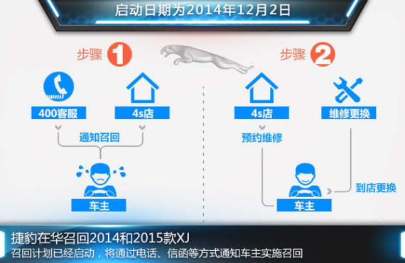 对于此次召回事件的相关信息,网通社以消费者的身份致电捷豹中国客户服务中心官方400服务热线并进行咨询。对方表示:已收到厂商召回通知,召回计划已于2014年12月2日启动,将以电话、短信等方式通知车主实施召回。同时,车主也可拨打官方客户服务热线,并提供车辆的车架号,以确认车辆是否涉及此次召回。
