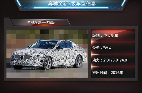 在奔驰品牌的规划中,未来旗下轿车将主要基于MFA(前驱车)与MRA(后驱车)平台打造,其中不久前上市的奔驰全新C级已采用MRA平台打造,之后更多车型将陆续使用此平台。近日,芬兰媒体透露:全新一代奔驰E级 (配置|询价)有望在2016年推出,新车将采用与奔驰C级相同的MRA平台打造,车辆轴距将进一步加长,同时车身重量将有所降低,拥有更出色的燃油经济性。动力方面,全新奔驰E级将搭载2.0T、3.0T车型,而AMG车型将搭载4.0T引擎,与之匹配的将是全新的9速自动变速箱。