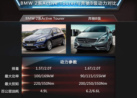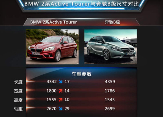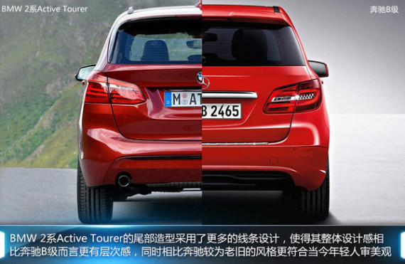 BMW 2系Active Tourer作为一款紧凑型“运动旅行车”,奔驰B级将成为其主要的竞争对手,虽然外观造型的设计偏向旅行和MPV形式,不过内部空间结构较为单调,但是2系Active Tourer则在这方面有着明显优势,下面网通社将向大家介绍上述两款产品的不同之处。