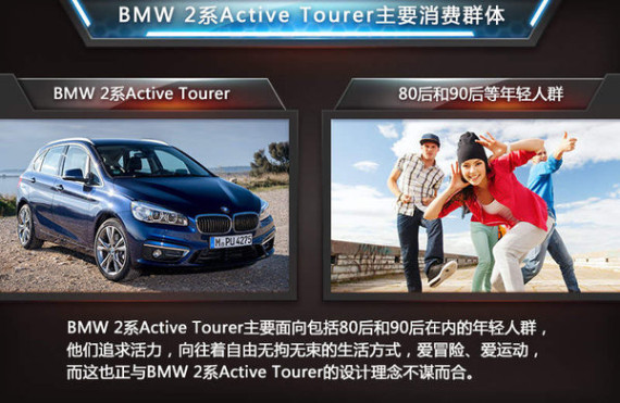 如今国内消费人群越来越年轻,80后甚至90后已开始主导汽车消费市场,而这部分人群充满活力,并不喜欢被掌控,向往着自由,无拘无束的生活方式。2系ACtive Tourer则正是面向这一消费人群的产品,多样的空间组合以及优秀的动力性能,完全可以帮助这些年轻人完成他们所追求的目标。