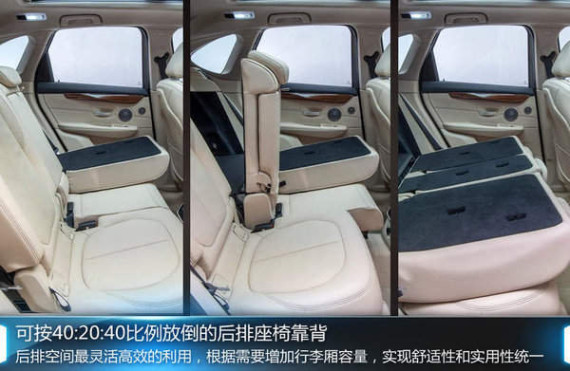 2系Active Tourer作为一款“运动旅行车”储物空间以及多样的车内布局组合无疑成为重点之一,而该款产品并没让我们失望。可按40:20:40比例放倒后座靠背,拥有十分灵活的空间调整,满足不同的用车需求。同时当第二排完全放倒后,达到1510升的后备箱空间,可放下长达2.4米的物品。