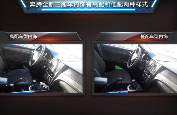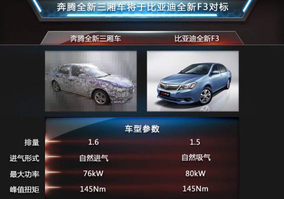 动力方面,目前虽然没有确切的消息,但从之前曝光的数据来看,B30将采用一汽自主的技术平台和动力总成,新车将有望搭载1.6L自然进气发动机,该发动机最大功率为76kW,峰值扭矩为145Nm,与之匹配的将是5速手动变速器或6速手自一体变速器。从“账面”上来看,奔腾B30与竞争对手比亚迪全新F3不相上下。