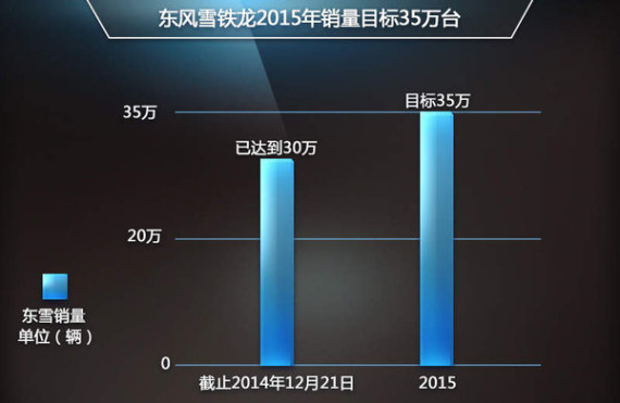 今年是东风雪铁龙销量强势增长的一年,也是实施“龙腾C计划”的攻坚年。东风雪铁龙前11月累计销量达290,522台,同比增长15.48%。而今年全国市场的整体增速在7%左右,东风雪铁龙增幅是行业平均水平的2倍有余,这主要得益于神龙公司一系列战略规划的全面落实以及东风雪铁龙“龙腾C计划”的实施。虽然2015年国内市场仍将延续今年下半年的“寒冬”态势,但是在东风雪铁龙的销量预测当中,其市场增速仍然可以保持在10%左右,由此估计该品牌2015年的销量目标将达到35万台,而这当中并不包括将于2015年1月1日划归东风雪铁龙销售管理体系的进口车销量。