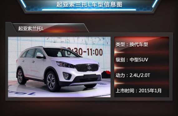 索兰托L是全新一代索兰托的国内版本,新车在外观设计上较现款车型更加大气,采用了虎啸式的家族式前脸。犀利的大灯与进气格栅相融合,配合梯形的雾灯框以及黑色的保险杠,整体效果十分霸气。在车身尺寸方面,索兰托L的长宽高依次为4780/1890/1685mm,轴距为2780mm,较现款车型增加了80mm。 在动力方面,索兰托L将采用2.4L汽油自然吸气直喷发动机和2.0T汽油发动机。其中2.0T汽油发动机的最大输出功率为177kW,峰值扭矩为350Nm;2.4L汽油发动机的最大输出功率为138kW,峰值扭矩为241Nm。在传动方面,与这几款发动机相匹配的将是一款是6速手自一体变速箱。