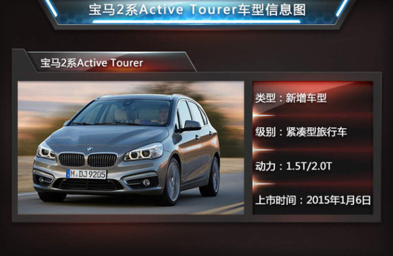 宝马2系Active Tourer定位于一款紧凑型旅行车,但是其车身线条十分饱满,整体造型更趋向于一款MPV车型。宝马标志性的双肾格栅和带有后扰流板的车尾等设计元素都让其看上去充满活力。新车基于UKL前驱平台打造,车身长宽高依次为4342/1800/1555mm,轴距为2670mm。在动力方面,宝马2系Active Tourer搭载1.5T三缸发动机或2.0T四缸汽油发动机,这两款引擎的最大功率分别为100kW和169kW,峰值扭矩分别为220Nm和350Nm。在传动系统方面,新车将匹配8速手自一体变速器。