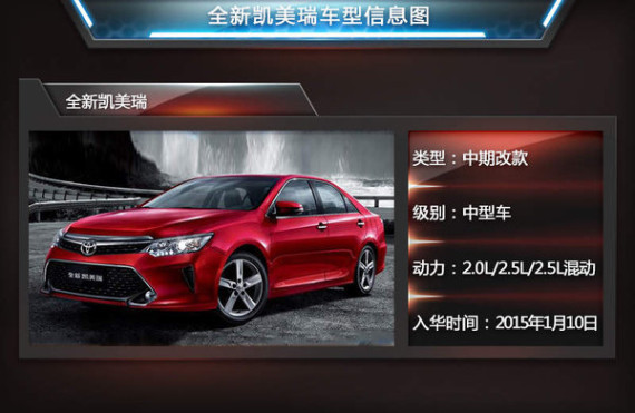 全新凯美瑞前脸采用了丰田“Keen Look”的家族式设计,上方的进气格栅较小,而下方进气口则采用了“大嘴”造型,加上多处镀铬饰条的装饰,让新车看上去十分霸气。在动力方面,全新凯美瑞搭载的是2.0L、2.5L以及2.5L混合动力三种动力系统。其中全新的2.0L发动机的最大功率达到123kW,峰值扭矩为199Nm。2.5L发动机最大输出功率135kW,峰值扭矩为235Nm。在传动系统上,普通版车型搭载的是6速自动变速箱,混动版车型则使用CVT变速箱。