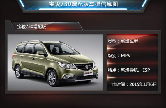 宝骏730在外观上采用了宝骏家族式的设计风格,盾牌形格栅中央为宝骏品牌LOGO。上下进气口内部格栅都为黑色网状设计,较为时尚。在尺寸方面,宝骏730的长宽高分别为4685/1785/1735mm,轴距为2750mm。新增的1.8L手动豪华导航ESP版增加了博世ESP系统和导航功能,其将配备低胎噪的马牌轮胎。在动力方面,新增车型搭载的是一台最大功率100kW的1.8L自然吸气发动机,与发动机匹配的将是5速手动或6速自动变速箱。