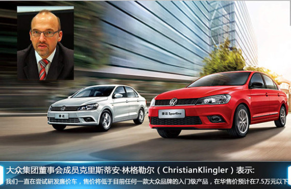 近日在德国沃尔夫斯堡总部召开的管理层会议上,大众集团正式确定了廉价车计划,这个全新廉价品牌最终将以“一汽-大众合资子品牌”的形式登陆中国市场。此外,媒体还了解到:未来其有望推出包括两厢车、三厢车以及小型SUV车型。大众集团董事会成员克里斯蒂安·林格勒尔(ChristianKlingler)表示:我们一直在尝试研发廉价车,定价将低于目前任何一款大众品牌的入门级产品,预计在7.5万元以下。