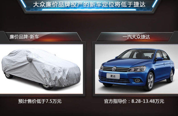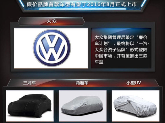 全新廉价品牌所拥有的所有车型,都将由一汽-大众、大众中国和一汽集团共同参与研发。大众有望专为“廉价车项目”开发一个平台,共线生产该品牌旗下车型,未来将根据市场需求,陆续投产两厢车、三厢车,以及小型的SUV车型,首款车型最快将在2016年8月正式投放市场。克里斯蒂安·林格勒尔称:全新廉价品牌所推出的产品,将主要面向中国市场销售。