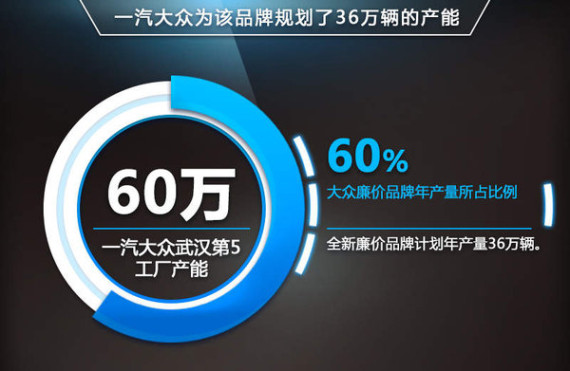 一汽-大众近几年销量持续增长,在取得良好市场表现的同时也在不断寻求产能上的扩张。其计划投建的第五工厂将落户武汉新洲,武汉也将成为全国首个坐拥东风集团、上海通用和一汽-大众三大汽车集团的城市。项目总投资将达到80亿元,占地面积约5000亩。新工厂年产能最高将达到60万辆,将其中预计将有36万辆的产能用于投产大众廉价品牌产品,剩余产能则用于一汽大众旗下车型。