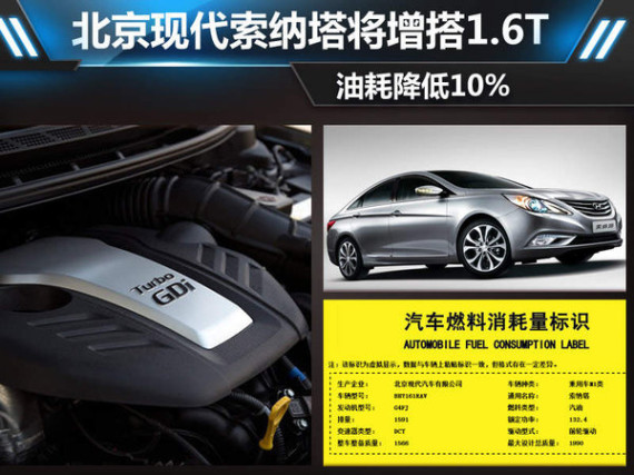 北京现代尽管在2014年广州车展中发布了全新一代索纳塔 (配置|询价),但这并意味着现款第八代索纳塔将因此而退出市场,值得注意的是,该车将在动力总成上进行更新,进一步迎合消费者对于小排量增压引擎车型的需求。近日,国家工信部透露:北京现代索纳塔将增搭1.6T涡轮增压发动机,并匹配双离合变速箱,百公里综合油耗仅为6.9L,这一数值较目前2.0L车型降低了10%。