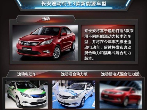 持续升温的国内新能源汽车市场为车企带来了潜在的发展机遇,北汽、上汽等整车企业均已推出新能源车型,更有启辰、腾势等合资自主品牌的新能源车型亮相市场,早已在新能源汽车领域蓄力多年的长安汽车未来也要加速新能源战略布局。长安新能源汽车有限公司总经理任勇此前曾表示,从2015年开始,长安将大举进入新能源车市场,尤其是新能源车私人消费市场。近日,长安汽车官方透露,长安将基于逸动 (配置|询价)打造3款新能源汽车产品,其中逸动电动车将在今年率先上市。