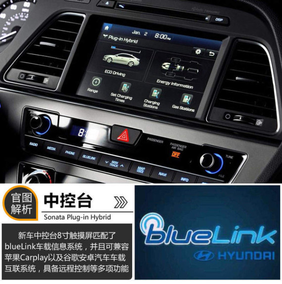 不得不提到的是,索纳塔插电式混动版将采用第二代BlueLink车载信息系统,该系统兼容苹果CarPlay以及谷歌安卓汽车两大车载互联系统,与汽车进行交互,并且可远程控制车门,查找汽车位置,并将车内信息及时反馈。对此,现代汽车美国的执行董事 Barry Ratzlaff也表示:“这些设备可以提升汽车的使用体验,通过小屏幕来远程控制汽车或及时获取相关信息。”