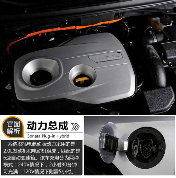 在动力方面,索纳塔插电式混合动力版由一款2.0L发动机和一台电动机组成,其中还包括一套电池组,该电池组容量达到9.8kWh,总容量是混动版车型电池组的5倍,与之匹配的是6速自动变速箱。值得一提的是,该车在纯电动模式下续航里程约为35公里,充电方式分为两种:一种是在240V输出电压下,仅需2小时30分钟可完成充电;在120V时,这一过程则需要5个小时。