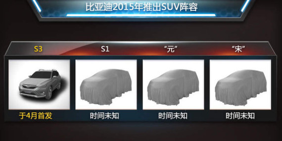 由于SUV市场的热度持续走高,比亚迪也不约而同的加大了这一细分市场的投入。根据比亚迪的新车投放规划,2015年将相继推出唐、宋、元等新能源SUV和S1、S3等传统能源SUV,实现更加完善的SUV产品阵容。日前,媒体获悉:比亚迪全新SUV车型“S3”的申报图。据了解,这款SUV有望于今年4月在上海车展首发,并将搭载1.5T增压发动机。