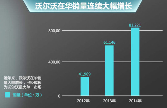 沃尔沃在2010年被吉利集团收购之后,随即开启了全面复兴计划。中国市场成为沃尔沃重新崛起的关键区域,目前沃尔沃在华拥有两大整车生产基地,一个研发中心,本土化战略成功的助推沃尔沃实现产品层面利润扩大化。体现在销量方面,从2013年开始沃尔沃在华销量出现连续大幅增长的态势。