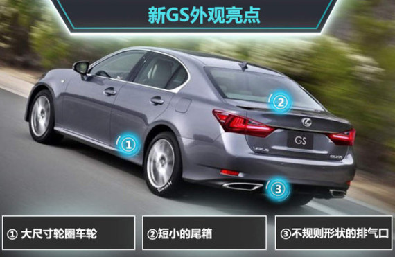 在与现款GS车型的尾部对比中不难看出,新款GS保持了与现款车型大部分的线条设计,只是在尾箱上部添加了一个尾翼,虽然很难起到提供尾部下压力的作用,但就加装F-sport版套件的GS而言,其美观度方面还是独树一帜的。