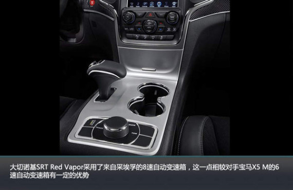 这款大切诺基SRT Red Vapor的主要竞争对手是同为高性能SUV的宝马X5 M。从发动机数据上来看,大切诺基SRT Red Vapor的最大功率为344kW,最大扭矩为624N·m,相比对手的4.4T双涡轮增压发动机都要略逊一筹。但大切诺基SRT Red Vapor采用了来自采埃孚的8速自动变速箱,这一点相较对手的6速自动变速箱有一定的优势。