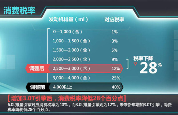 未来宾利SUV推出3.0T混动车型后,势必会引入国内市场。新增的2.0T入门车型虽然在动力方面较为薄弱,但相对6.0L引擎在燃油经济性方面将有很大的优势。同时,在国内6.0L排量引擎对应消费税率为40%,而3.0L排量引擎则为12%,未来新车增加3.0T引擎,消费税率降将低28个百分点,对于售价将会高于慕尚的宾利SUV来说,28个百分点的节省相当可观。(新款宾利慕尚售498-555.8万元)
