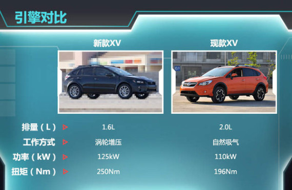 在森林人搭载排量更低的2.0T水平对置引擎后,斯巴鲁就公布了最新研发的1.6T涡轮增压引擎,该引擎所能提供的最大功率为125kW,最大扭矩为250Nm。截止到目前,斯巴鲁旗下并没有一款车型搭载该发动机,而此款最新引擎将有望搭载于全新XV车型上。与2.0L引擎的最大功率110kW、最大扭矩196Nm相比,1.6T引擎的最大功率及最大扭矩分别增加了15kW与54Nm。同时在斯巴鲁舍去6缸设计后,相对较小的1.6L水平对置4缸增压引擎也将更加轻盈,重心更低,增加其驾驶稳定性。