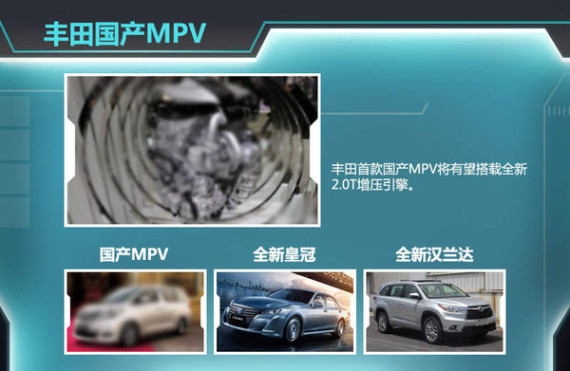 丰田汽车公司2014年在华销量达到103.24万辆,同比增长12.5%,年度销量首次突破百万辆,卡罗拉、RAV4、汉兰达等国产车型贡献较大。随着MPV市场份额近年正在逐步扩大,据丰田汽车内部人士向媒体透露:丰田计划在华投产一款MPV车型,挑战别克GL8引领的豪华MPV细分市场。