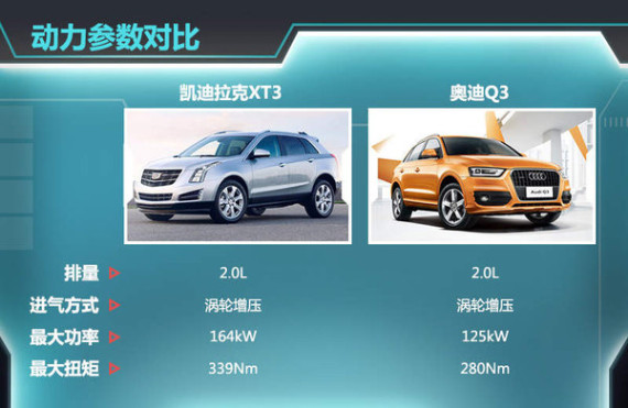 虽然是入门级SUV车型,XT3动力性能同样将延续凯迪拉克家族一贯的出色动力表现。凯迪拉克XT3将搭载搭载2.0L四缸涡轮增压引擎,最大功率为164kW,最大扭矩达到339Nm。与竞争对手对比来看,奥迪Q3搭载的2.0T引擎最大功率为125kW,最大扭矩280Nm,凯迪拉克XT3在此项数据上均存在明显优势。此外,XT3有望采用后驱设计进一步提升竞争优势,并将提供四驱版本。