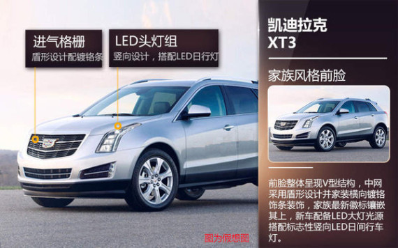 从假想图来看,凯迪拉克XT3外观设计将延续凯迪拉克家族产品造型风格。前脸整体呈现V型结构,中网采用盾形设计并家装横向镀铬饰条装饰,家族最新徽标镶嵌其上,整体视觉风格硬朗时尚。新车配备LED大灯光源搭配标志性竖向LED日间行车灯,符合豪华车光源设计发展趋势。此外搭配镀铬装饰的黑色下格栅及双侧进气口、7幅式设计铝合金轮毂、黑色侧裙及车身硬朗线条等设计元素,再次为整车设计增添了亮点。