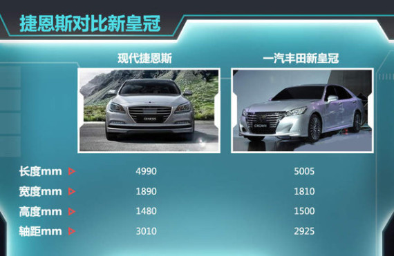 目前现代旗下C级车仅有捷恩斯(第一代命名劳恩斯)一款车型,该车在去年8月正式上市。该车的车身尺寸分别为4990/1890/1480mm,轴距3010mm。未来北京现代将国产的这款车型车身尺寸将接近捷恩斯。这款全新C级轿车将竞争对手直接锁定在了一汽丰田皇冠上,现了解到,新皇冠长宽高分别为5005/1810/1500mm,轴距2925mm。从两者的轴距尺寸来看,北京现代全新C级车也将在后排乘坐空间方面有着更出色的表现。