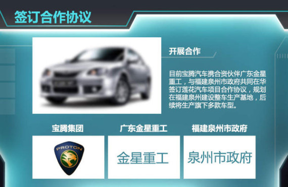 此次莲花汽车项目包括建设莲花汽车生产基地和研发中心两个部分,主要研发生产英国莲花品牌汽车整车和发动机等。依托于英国莲花过硬的核心技术,宝腾汽车旗下车型在马来西亚十分畅销,现已成为马来西亚地区最大的汽车公司。值得一提的是,宝腾控股莲花工程公司曾经给予中国青年汽车技术上的支持,青年莲花生产的L3车型,也就是宝腾畅销车款“PERSONA”。