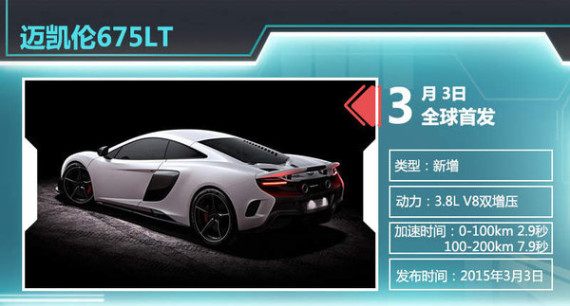 在超跑市场竞争日趋激烈的今天,英国超跑制造商迈凯伦已经意识到其稍显薄弱的产品线并不足以对抗法拉利等传统豪强,继推出650S并取得显著销售业绩后,迈凯伦将在新车型的推出上继续发力。日前,海外媒体netcarshow透露,迈凯伦将在今年3月开幕的日内瓦车展上推出全新超跑--675LT。新车搭载了重新调校的3.8L V8双涡轮增压引擎,最大功率可达496kW,百公里加速时间仅为2.9秒。中国作为迈凯伦极为重视的市场,此前每当旗下有新车上市均同步引入国内发售,而迈凯伦这款全新超跑也有望年内入华销售。