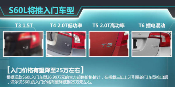 S60L T3入门车型将搭载的全新三缸1.5T引擎重量仅99千克,相比传统的四缸与六缸发动机,三缸引擎拥有更轻的重量和更小的体积。如此的改变在保证足够动力的同时,将为新车带来更好的燃油经济性,随之而来的将是前期税率和后期燃油消费等多种费用的降低。由此对新车售价进行估计,现款S60L入门车型26.99万元的官方起售价格估计,在搭载三缸1.5T引擎的T3车型推出后,沃尔沃S60L的入门价格有望降低到25万元左右。