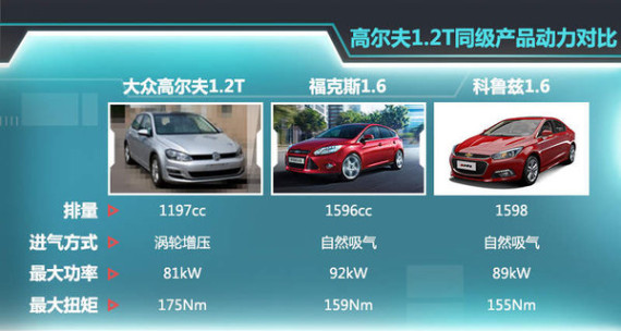 国内紧凑型轿车市场可称得上竞争最为激烈的细分市场之一,一汽大众高尔夫在该市场拥有众多竞争对手,例如福特福克斯、雪佛兰科鲁兹等车型。其中福特福克斯2014年全年销量达到39.18万辆,雪佛兰科鲁兹2014年销量23.86万辆,此两者均拥有不俗的竞争实力。目前福特福克斯与雪佛兰科鲁兹均已推出搭载1.6L发动机的车型,最大扭矩分别达到159Nm和155Nm,一汽大众搭载的1.2T发动机可输出175Nm的最大扭矩,动力方面有一定优势。此外入门车门槛降低后,新车相比竞品的性价比也将进一步提升。