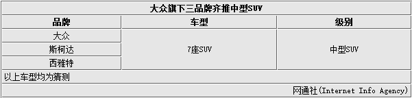 在本次的日内瓦车展期间,西雅特推出了首款SUV的概念车,该车定位于中型SUV,新车量产版本将在9月法兰克福车展上发布,并在明年正式上市。对此,媒体在整理了大众集团的新车规划后发现,斯柯达与大众品牌在今年与明年将分别推出一款中型SUV,加之西雅特的新SUV车型,大众集团将推出三款中型SUV。在全面布局紧凑SUV市场后,大众集团已经将下一个增长点放在中型SUV市场,车辆在推出后将进军丰田汉兰达、现代胜达所在的细分市场。中国作为增速最快的汽车市场,SUV车型需求居高不下,大众集团上述三款SUV也有望全部引入国内市场。