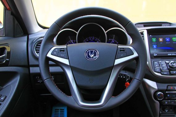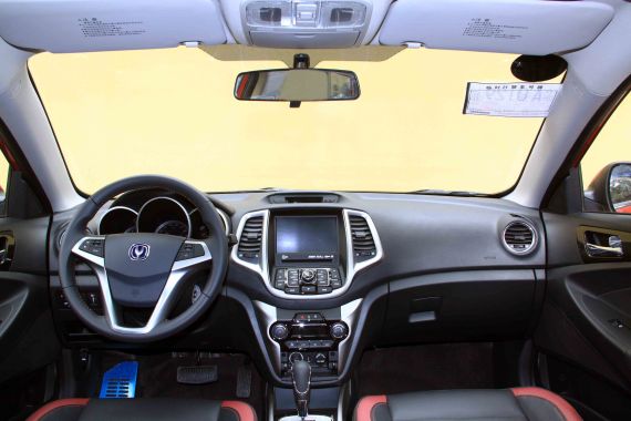 2015款CS35的内饰与2014款保持一致,中控大屏被替换成了in call 2.0智能车载互联系统。主要的增配在于安全配置方面,有esp车身稳定系统、TPMS胎压监测系统、疲劳监测系统、倒车影像和STT智能节油系统,可惜这一堆配置都只在1.6L MT/AT的尊贵型车型上配备。
