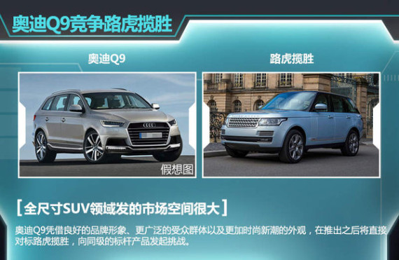 在生产SUV车型的厂商当中,路虎可谓是越野车领域的标杆级品牌。尤其是该品牌旗下定位于全尺寸SUV市场的路虎揽胜在很多SUV车型爱好者的眼中都以“梦想之车”的形象存在着。奥迪Q9凭借良好的品牌形象、更广泛的受众群体以及更加时尚新潮的外观,在推出之后将直接对标路虎揽胜,向同级的标杆产品发起挑战。当今在全尺寸SUV领域,市场还存在着很大的空间,奥迪Q9究竟会有怎样的市场表现,可能更大的影响会来源于该车的售价。不能否认,这是一款值得期待的超大型豪华SUV。