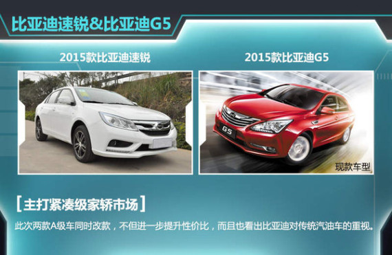 值得一提的是,去年9月才刚刚以全新车型身份上市的比亚迪G5在时隔半年之后就迎来首次改款,这样的更新速度即便放眼整个业内也是首屈一指。至于速锐,则是自2012年发布后的中期改款作品,其改动幅度自然也比G5更大一些。