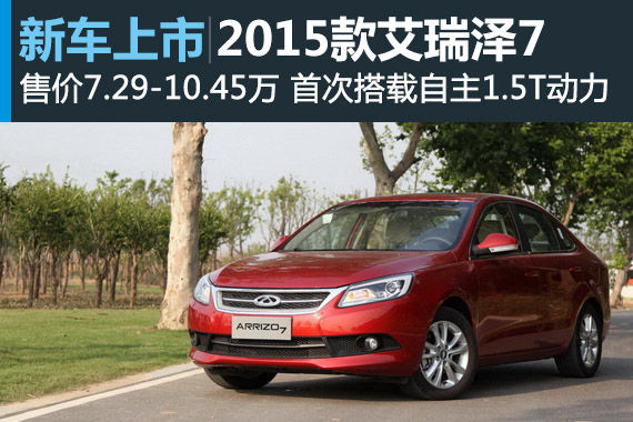 新浪汽车讯 2015年3月19日,奇瑞宣布旗下中级车型艾瑞泽7 2015款车型上市,售价7.29-10.45万,新车共发布10款。本次发布会选择了以互联网为载体的新颖形式,同时这也是艾瑞泽7首次搭载奇瑞自主研发的涡轮增压发动机,百公里加速进入10秒以内。新车的上市将极大增强艾瑞泽7的市场竞争力。