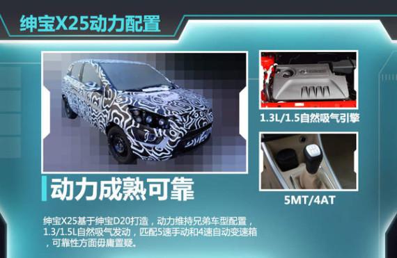 北汽集团拳头产品北汽E系列现已划归绅宝品牌旗下,定名绅宝D20,此次小型SUV绅宝X25也是基于该车打造。既然是兄弟车型,动力方面将维持不变,搭载北汽自主研发的1.3L/1.5L自然吸气发动机,其中1.5L自然吸气发动机最大功率85kw,峰值扭矩为148N.m,匹配5速手动或4速自动变速箱。成熟的动力配置可靠性毋庸置疑,这也是绅宝X25品质的体现,该车上市后将与目前自主品牌热销车型瑞风S3直接竞争。
