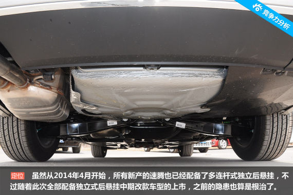 与大多数中期改款车型相同,新速腾在造型和配置方面有所改变,不过这并不是此次改款的重点。动力和悬挂系统的优化和升级才是新速腾最大的特点。虽然从2014年4月开始,所有新产的速腾也已经配备了多连杆式独立后悬挂,不过随着此次全部配备独立式后悬挂中期改款车型的上市,之前的隐患也算是根治了。此外,新速腾还换装了包括1.6L自然吸气发动机和两款1.4L TSI涡轮增压发动机在内的EA211系列发动机,老款中1.8TSI车型也被取消。