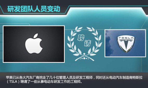近几年苹果已从各大汽车厂商吸纳数十位管理人员和企业工程师,据苹果公司CEO蒂姆.库克(Tim.Cook)透露,公司已从特斯拉(TSLA)聘请了数量可观的研发人员,并投入到iCar的项目上。