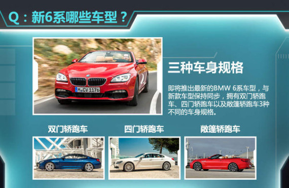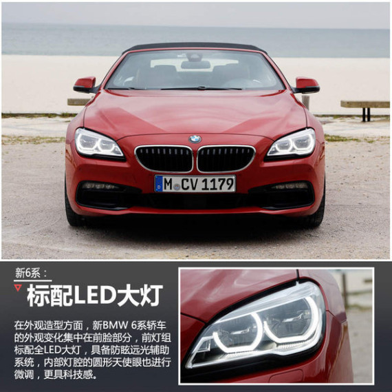 6系轿车可谓是BMW品牌在大型豪华轿跑车领域的杰作,自1976年起BMW品牌车型首次与阿拉伯数字“6”联系在一起,打造了第一代6系至今已有近40年的时间。与同级德系豪华车奔驰CLS和奥迪A7相比,BMW 6系显然更具底蕴。2015年初BMW品牌新6系在北美底特律车展首发,随后该车也将于今年底正式入华销售。对于这款全球销量超过8.5万辆的豪华轿跑车,此次中期改款新作针对性的进行6项重大改进,包括外观造型、个性化套件、动力性能等方面,这也是新BMW 6系的亮点所在。