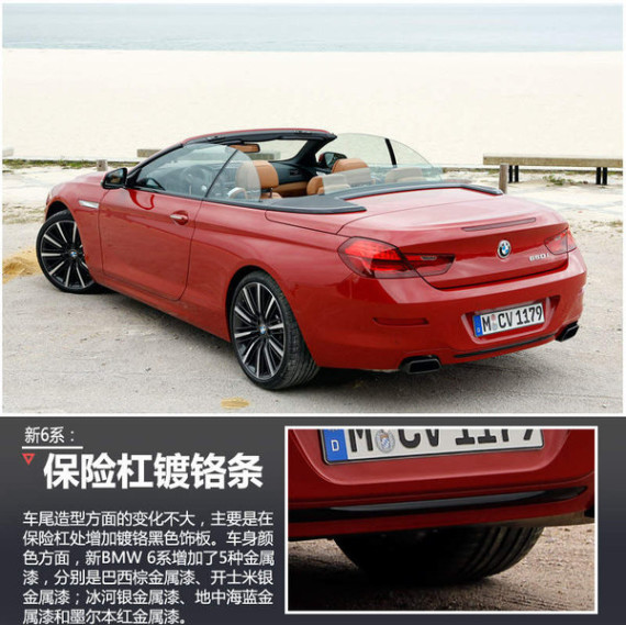 总结:总而言之,在新BMW 6系的六项重大改动令车辆显得更加动感,更加满足消费者的个性化需求,同时赋予更澎湃的动力输出。目前唯一不确定的是,是车价和国内的发动机排量是否还会是4.0T版。选择6系轿跑车不单单是尊崇动感,更是一种优雅的品位。