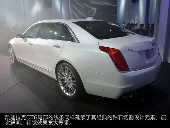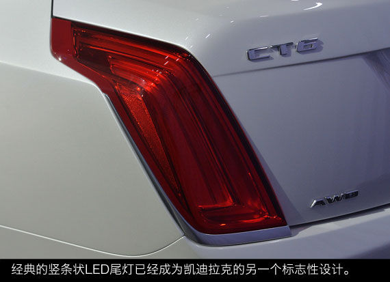 凯迪拉克CT6尾部的线条同样延续了其经典的钻石切割设计元素以及家族式的竖条状LED尾灯。不过与凯迪拉克家族其他车型不同的是,CT6的高位刹车灯并没有设计在后备厢盖上,而是上调到了后风挡上部。