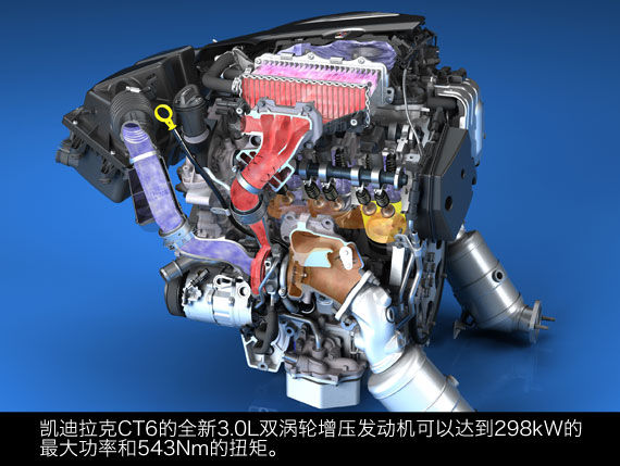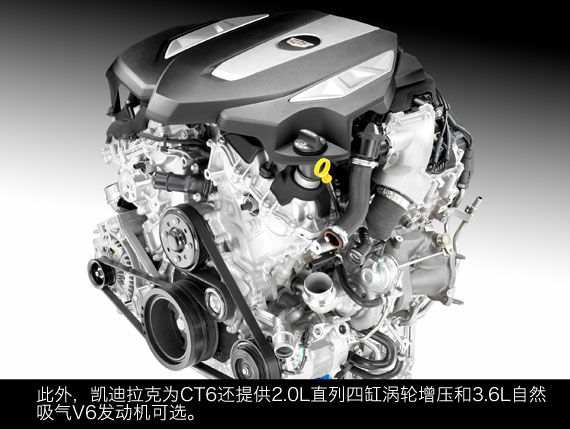 在上市初期,凯迪拉克为CT6将提供包括2.0L直列四缸涡轮增压、3.6L自然吸气V6和3.0L双涡轮增压V6三款汽油发动机选择。其中,全新的3.0L双涡轮增压发动机可以达到298kW的最大功率和543Nm的扭矩。在未来上市之后,凯迪拉克还将增添一款双涡轮增压V8发动机,以及一套新研发的插电式混合动力系统。
