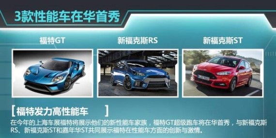 如今高性能车型已经成为各大汽车品牌在市场上掘金的新蓝海。有专家预测,今年中国市场的年销量可能会达到10万台。此前,福特宣布未来5年内将推出12款高性能车型以扩张产品线,并组建全球性能车部门来实现这一目标。在上海车展上,福特还将有非常庞大的全新性能车组团亮相。福特GT超级跑车将领军福特性能车阵容与新福克斯RS、新福克斯ST一起首次亮相中国市场。对于剩下的3款新车福特守口如瓶。不过此前有媒体报道新福克斯的普通版车型以及新款探险者也有望出现在7款新车的名单中。