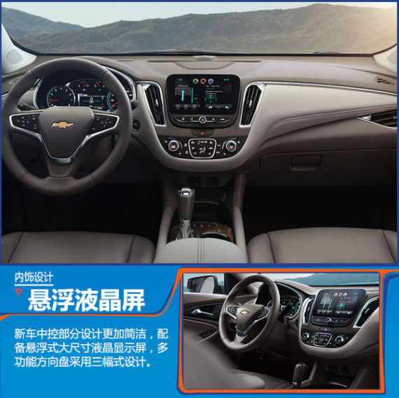 内饰部分,新一代迈锐宝采用通用汽车家族式环保一体座舱,整体内饰氛围延续了现款车型风格,细节处有诸多调整。新车中控部分设计更加简洁,配备悬浮式大尺寸液晶显示屏,空调出风口分列两侧,换挡杆所在区域采用木纹材质装饰。多功能方向盘采用三幅式设计并采用镀铬饰条勾勒线条,功能按键更加丰富。仪表盘采用一体式设计显示效果为双幅仪表加中央行车信息,人机交互效果更加出色。