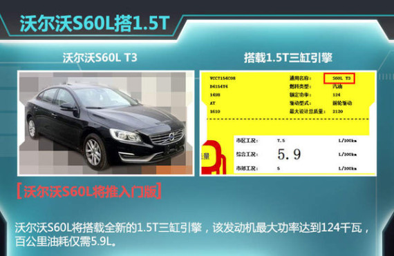 沃尔沃在去年推出了全新的Drive-E系列汽油发动机,在当时只推出了2.0T的四缸引擎,实际上Drive-E系列发动机还拥有排量更小的三缸引擎,而这台发动机也将逐步搭载在现有车型之中。近日,网通社从国家工业和信息化部获得了S60L T3车型的相关信息,新车显示将搭载一台排量为1.5L的涡轮增压引擎,该发动机最大功率可达到124千瓦,油耗仅为5.9L。实际上,沃尔沃S60 (配置|询价)L T3车型正是使用了最新的三缸引擎,随着这台发动机的使用,S60L的价格门槛势必将进一步下探,届时入门车型有望进入25万元区间,这将加强该车在国内豪华中级车市场的竞争力。