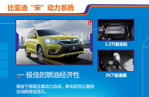 比亚迪“宋”将搭载和“秦”相同的双擎双模动力系统。作为比亚迪“542”战略车型中的一员,“宋”不仅有着强劲的动力,而且在燃油经济性方面更是首屈一指。得益于搭载这套动力总成,新车的百公里综合油耗将低至2L。在纯电动模式下最大可以实现70KM的零排放,同时采用比亚迪全时电动四驱系统,科技含量十足。